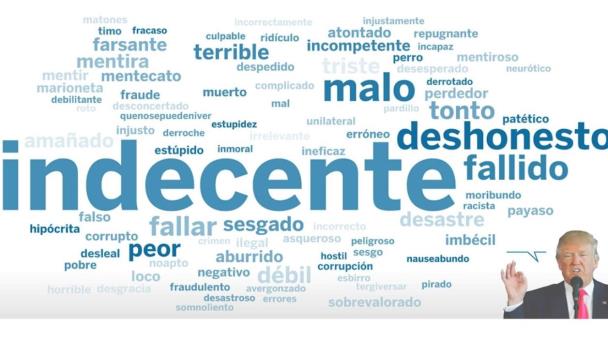 Los términos de carácter negativo más repetidos por el magnate republicano en la red social son "indecente", "malo" y "deshonesto"