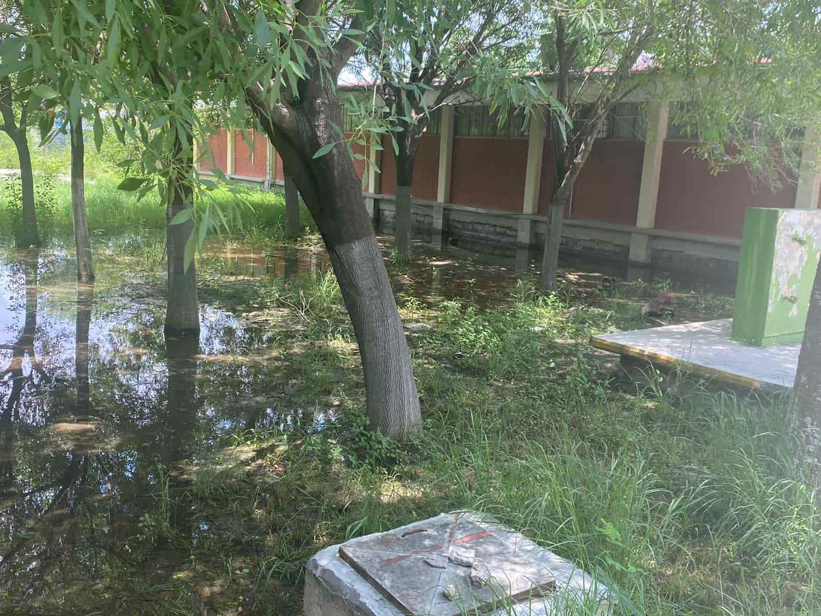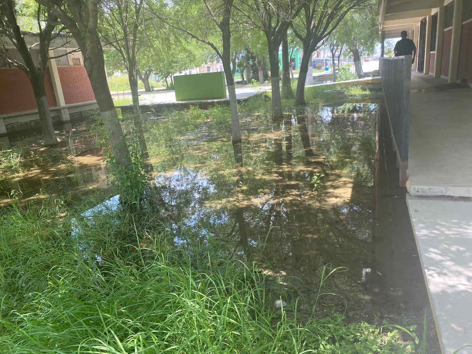 El panorama no es nada alentador ante la falta de uno de los portones de entrada principal que al parecer sucumbió, y la anegación de una parte de los patios de acceso a las instalaciones principales que se encuentran inundadas, atestadas de yerba y zancudos.