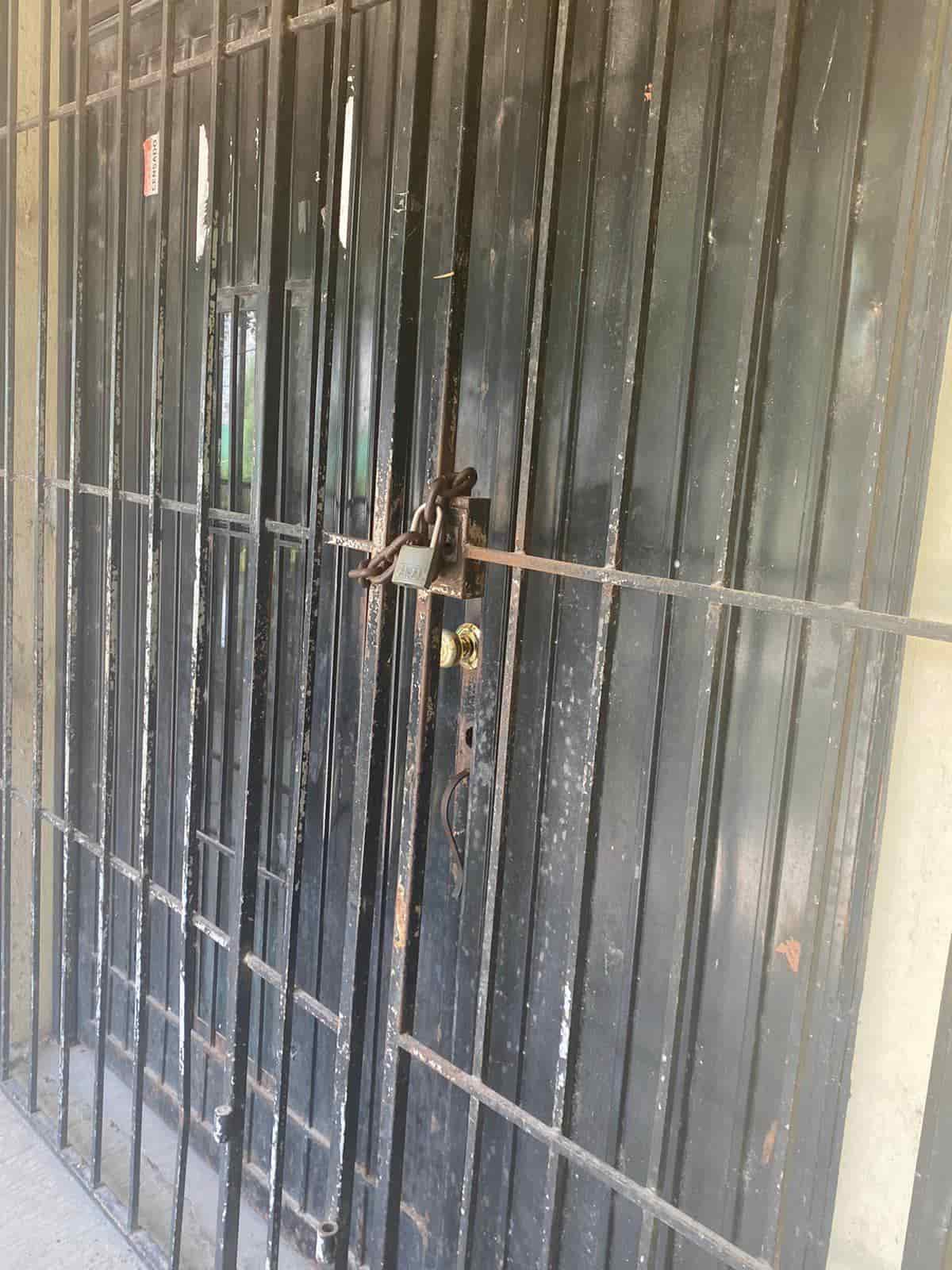 La entrada principal a las oficinas de Río Bravo se encontraba con candado apenas pasado el mediodía