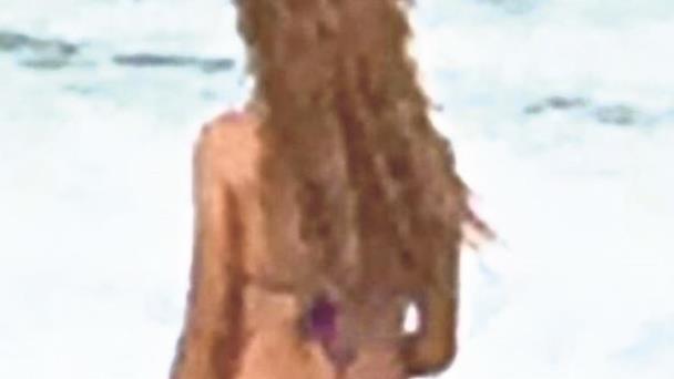 No detalló cuándo fue tomada la imagen, pero en ella se le ve de pie en el mar, de espaldas, con un bikini azul.