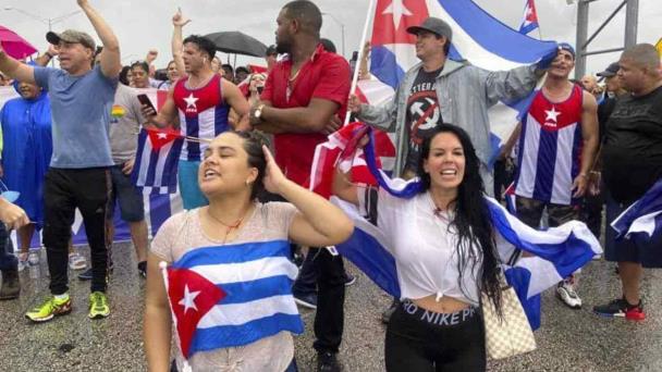 Miles de cubano-estadounidenses también se reunieron durante el fin de semana en la zona de la Pequeña Habana en Miami, mostrando su apoyo a los cubanos que protestaron en la isla contra los altos precios y la escasez de alimentos. Esas protestas no autorizadas son sumamente raras, y la policía cubana acudió en masa el lunes para controlarlas.