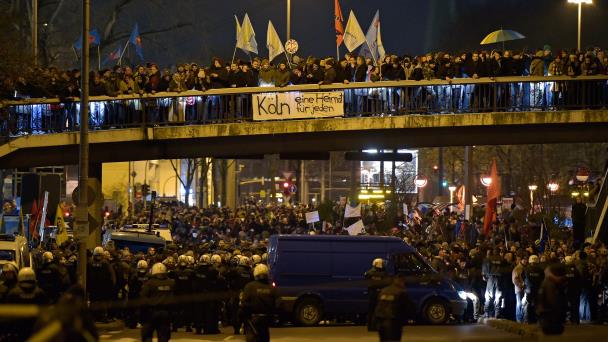 ENCONTRADOS. Ha sido en Colonia, Alemania, donde se ha registrado una masiva concentración contra las protestas del grupo autodenominado Europeos Patrióticos contra la islamización de Occidente (PEGIDA).