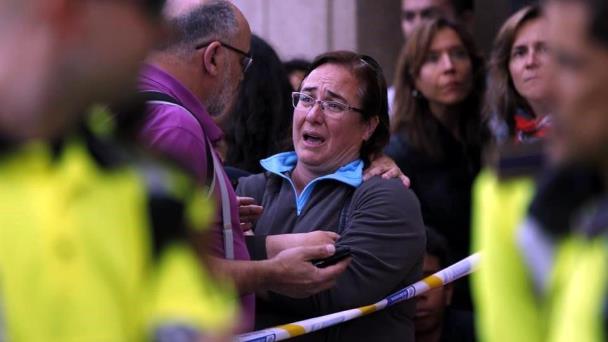 Una mujer llora en el exterior del instituto de secundaria Joan Fuster de Barcelona, España. Foto: AP