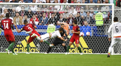 Fue al minuto 34 cuando Ricardo Quaresma anotó después de un contragolpe y una jugada de crack que inició Cristiano Ronaldo poniendo a Portugal al frente con marcador de 1-0 sobre la selección mexicana. Seis minutos después México anotó el empate con remate de cabeza de Javier Hernández ¨El Chicharito¨, al minuto 40 se empató el juego a 1.