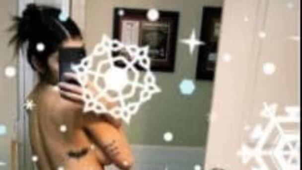 En la imagen se ve a Khalifa posando de espaldas frente a un espejo y cubrió su trasero con un sticker de copo de nieve.