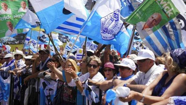 Miles de uruguayos se reunieron el sábado en la tradicional rambla montevideana para celebrar la victoria del virtual presidente electo, Luis Lacalle Pou.