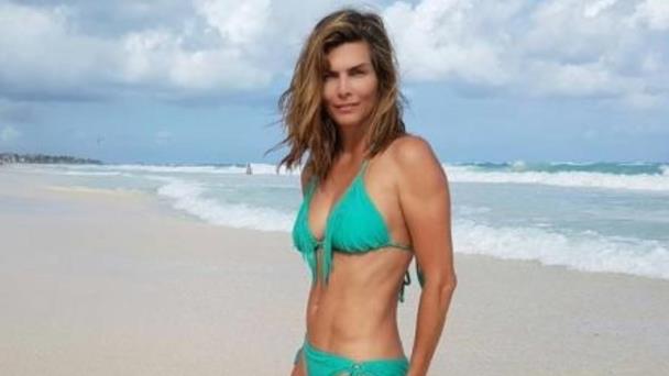 De rodillas en la arena y con un bikini color turquesa, Olivier mostró su tonificada figura.