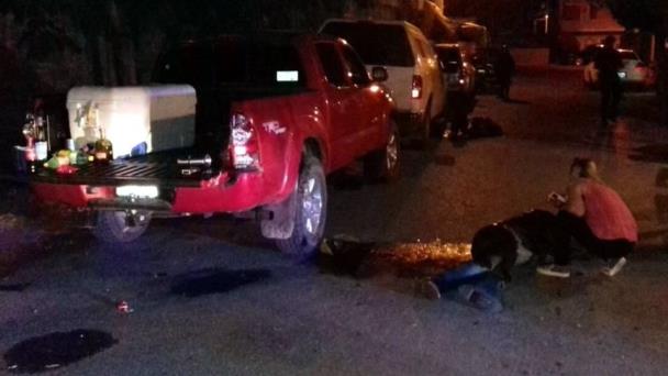 Se encontraban sentados en la caja de una camioneta Tacoma roja con placas de Tamaulipas, donde tenían las hieleras.