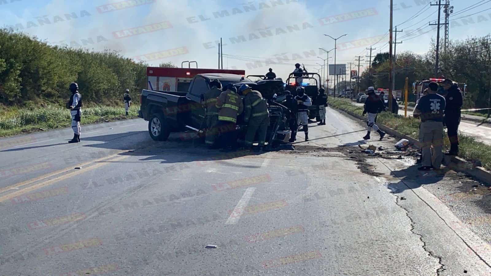 Elementos de la Guardia Nacional acordonaron los carriles laterales de la carretera Ribereña, donde quedó el joven sin vida para que personal de Protección Civil y Bomberos rescatara el cadáver el cual no fue identificado en ese momento.