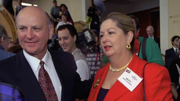 VISIONARIO. En la imagen de archivo, del 29 de septiembre de 1994, muestra al presidente de Blockbuster Entertainment Corp. H. Wayne Huizenga y su esposa Martí saludando a los accionistas después de una reunión en Ft. Lauderdale, Fla.