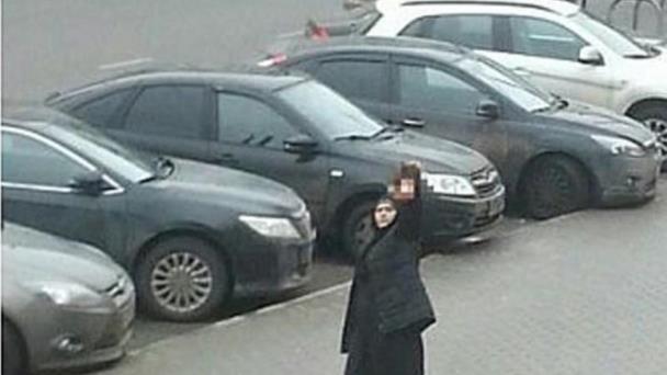 EVIDENCIA. Captura del video donde una mujer sujeta la cabeza de una niña en Moscú.