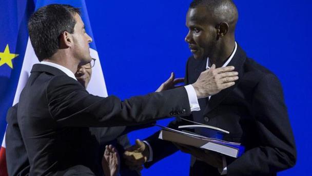 En la ceremonia retransmitida por la televisión, que certificó que el joven tendrá desde ahora la doble nacionalidad maliense y francesa, participó el primer ministro, Manuel Valls, él mismo nacido en Barcelona (España) y naturalizado francés a los 20 años.