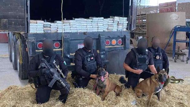Elementos del Grupo de Operaciones Especiales (GOPES) aseguraron un camión con droga en una bodega en la colonia Zedillo.