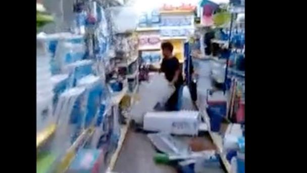 Cuando alguien le cerró una salida, el niño regresó y tiró más cosas antes de que otra persona lo tomara de la camiseta y lo sacara de la tienda.
