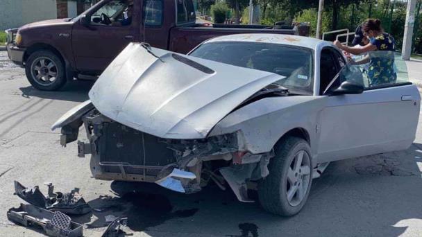 La conductora de un vehículo Ford Mustang chocó contra una camioneta Chevrolet Equinox.