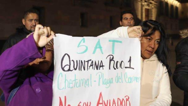 Con carteles donde se leía la leyenda "No soy aviador" y con los que exigieron su reinstalación inmediata, así como un alto a los despidos masivos, la mañana de ayer miércoles alrededor de 50 trabajadores despedidos del Servicio de Administración Tributaria (SAT) se manifestaron frente a Palacio Nacional.