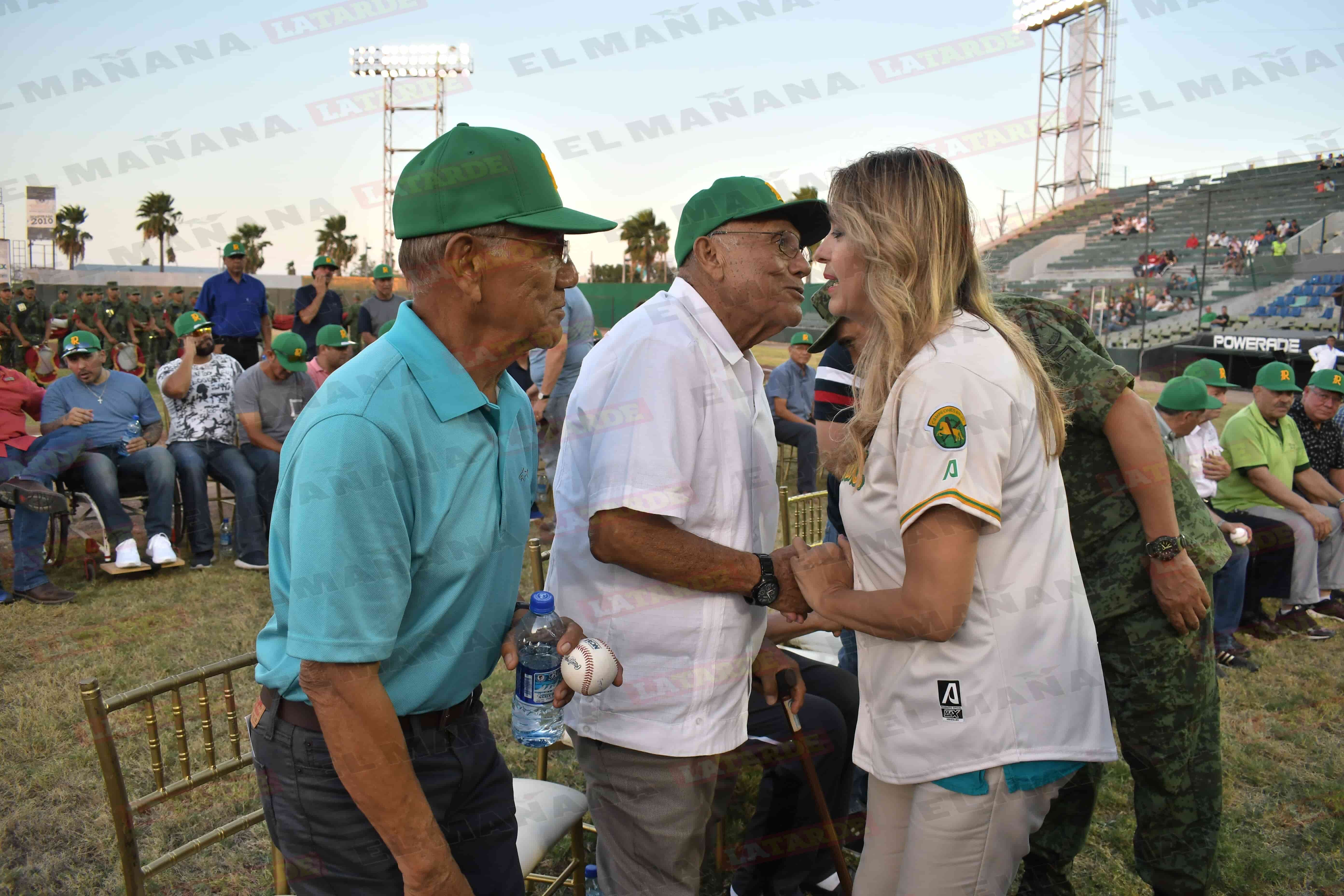 Los nombres que se mantienen en la memoria de los aficionados al beisbol y que fueron reconocidos son William Berzunza, Jorge Fitch, Alejo Ahumada, Joel Navarro, Jorge Rubio, Humberto García, Rodolfo “Rudy” Sandoval, Israel Buentello, Juan Treviño, José “Peluche” Peña, Gustavo Guerrero y Raúl “Chato” Montoya, además estuvieron presentes los familiares de los ya fallecidos Francisco Maytorena y el mánager Miguel Sotelo.
