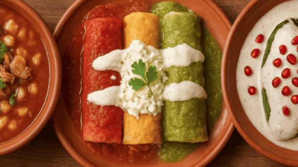 Por otro lado, las enchiladas es un plato económico y muy versátil en su preparación. Además, la idea de presentarlas en tres colores (verdes, rojas y con crema para el blanco) da el efecto de tener la bandera mexicana en tu mesa, ideal para sorprender sin gastar de más.