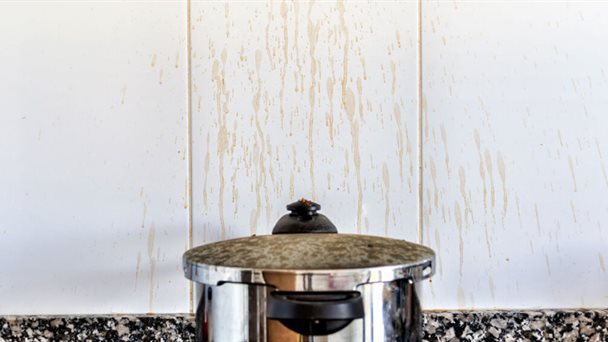 Si al terminar de cocinar detectar la presencia de una mancha, es el momento ideal para eliminarla, ya que si dejas que se seque puede dejar una huella en la pintura. Para estas manchas, puedes limpiar directamente con una esponja con agua tibia y jabón.