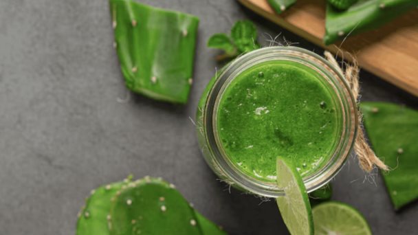 Jugo de nopal: Licúa 1 penca mediana de nopal con agua, jugo de limón y apio; esta bebida es fácil de digerir, lo que permite la rápida absorción de sus compuestos bioactivos.
