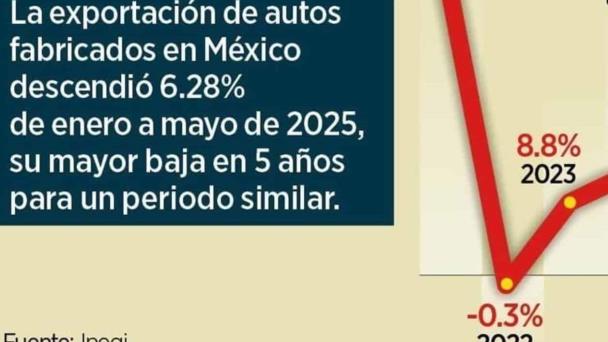 Sólo en mayo, la exportación de autos retrocedió 2.88 por ciento respecto al mismo mes de 2024. En abril el decremento fue de 10.88 por ciento.