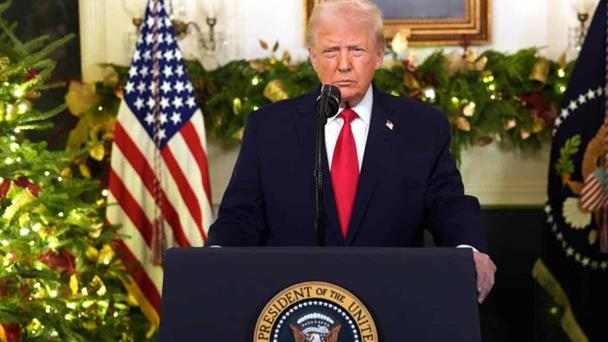 Flanqueado por dos árboles de Navidad y con un retrato de George Washington a sus espaldas, Trump buscó atribuir a su predecesor, Joe Biden, cualquier preocupación sobre la elevada inflación.