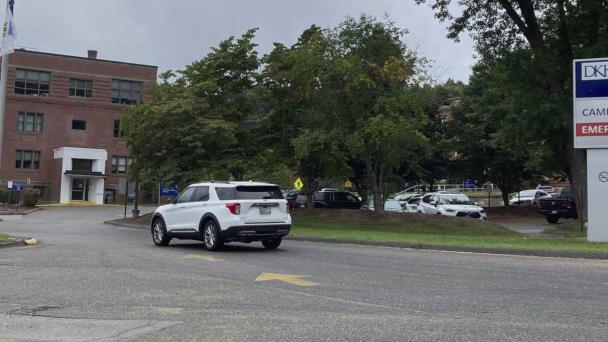 Un auto se dirige a la entrada del hospital Day Kimball, en Putnam, Connecticut.