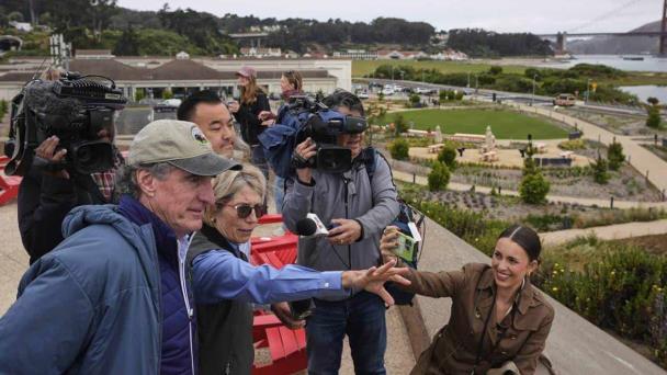 El secretario del Interior, Doug Burgum, izquierda, visita el presidio en San Francisco el jueves.