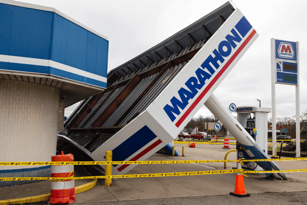 Un almacén en Elkhart, Indiana, fue destruido por las tormentas del domingo. No se reportaron heridos, publicó WSBT-TV.