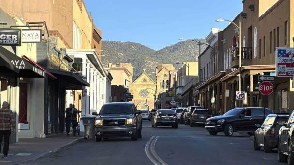 SANTA FE, Nuevo México, EE.UU.- El sol comienza a ponerse mientras los vehículos se abren paso a través de un distrito histórico en el centro de Santa Fe, Nuevo México. Las colinas de las Montañas Rocosas, impregnadas del aroma de piñones y enebros, que dominan Santa Fe, han ayudado a la ciudad a ganarse una reputación como refugio para actores y autores famosos que buscan escapar del foco de atención.