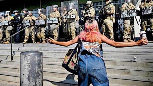 Les pregunté a tres de ellos si hablaban español y me dijeron que sí. Pero no quisieron decirme nada más. Estos miembros de la Guardia Nacional - convocados por Trump- si fueran llamados a reprimir a los manifestantes, tendrían la innoble tarea de enfrentarse con otros hispanos de su misma comunidad. Hermano contra hermano. Casi la mitad de todos los habitantes de Los Ángeles son latinos y una tercera parte nació en otro país. Hay pocas ciudades tan diversas y multiculturales como esta.