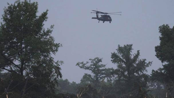 Un helicóptero sobrevuela el río Guadalupe tras una inundación repentina que azotó la zona el viernes 4 de julio.