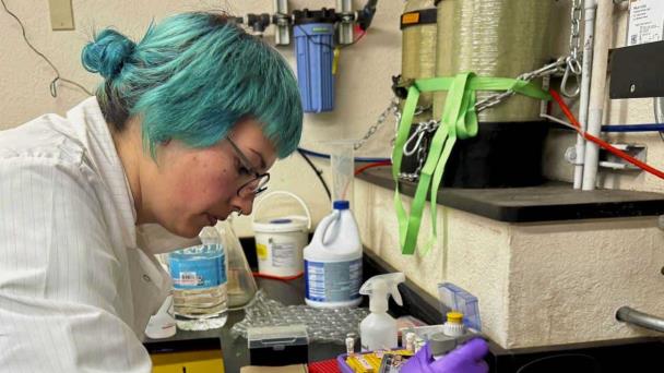 Kendra Dahmer, investigadora posdoctoral que estudia enfermedades infecciosas, trabaja en un laboratorio de la Universidad de California, Berkeley, en Berkeley, California.