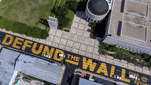 El mural, el cual estaba pintado sobre una calle frente al tribunal federal en Laredo con la leyenda "Desfinancien el Muro", fue retirado la noche del martes, un día después de una votación del Consejo Municipal, informó Noraida Negrón, portavoz de la ciudad.