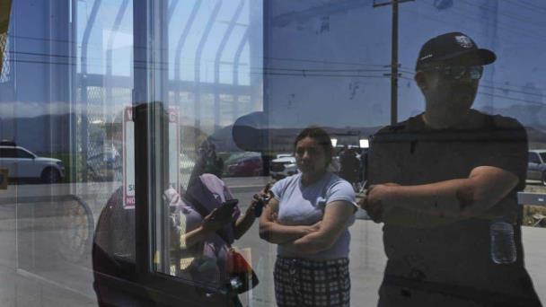 Varias personas esperan en el exterior de Glass House Farms, un día después de una redada migratoria en las instalaciones, el 11 de julio de 2025, en Camarillo, California.