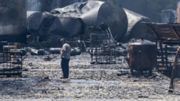Las cuadrillas de bomberos estaban removiendo escombros estructurales y sofocando las llamas en puntos calientes cubiertos. Los esfuerzos de respuesta ambiental continuaban en el río Tangipahoa y las vías fluviales circundantes.