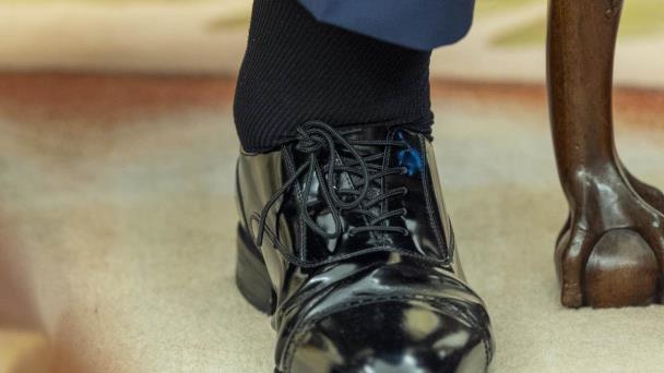 El pie izquierdo hinchado del presidente estadounidense, Donald Trump, durante una reunión en el Despacho Oval de la Casa Blanca.
