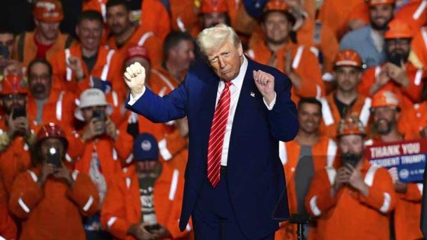 El presidente Donald Trump baila después de pronunciar un discurso en la planta siderúrgica de Steel Mon Valley Works