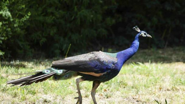 Un pavorreal en los jardines del hotel Ryde el martes 22 de julio de 2025, en Walnut Grove, California.
