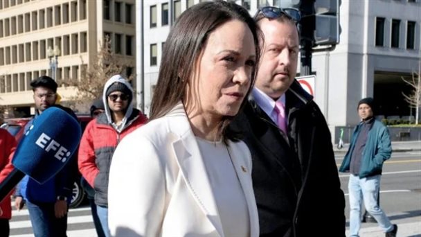 "Podemos contar con el presidente Trump", dijo la líder de la oposición venezolana María Corina Machado a sus partidarios en Washington tras reunirse con el presidente estadounidense en la Casa Blanca. Algunos de los que esperaban afuera comenzaron a corear "Gracias, Trump".