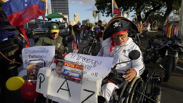 Partidarios del gobierno de Venezuela, recorren las calles de Caracas en motocicletas accesibles, para protestar contra la injerencia estadounidense.