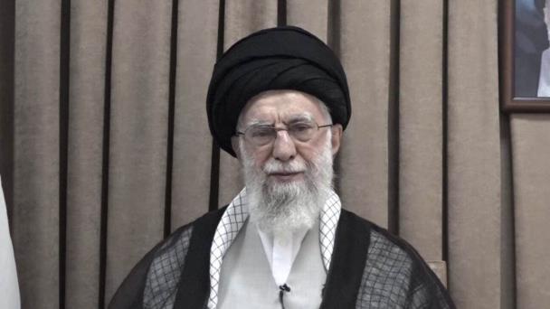Irán siguió una secuencia similar con la publicación de una declaración previa del líder supremo antes de la emisión del video, quizás como medida de seguridad. Se desconoce su paradero y era imposible discernirlo en el plano cerrado que mostraba solo cortinas beige, una bandera iraní y un retrato del gran ayatolá Ruhollah Jomeini, a quien sucedió en 1989.