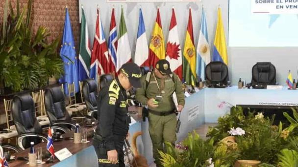 Pocas horas antes de la instalación de la conferencia, el líder opositor Juan Guaidó, quien llegó el lunes a Bogotá luego de atravesar la frontera caminando, denunció que el gobierno colombiano lo "sacó" del país mientras abordaba un vuelo rumbo a Estados Unidos. "La persecución de la dictadura se extendió lamentablemente hoy a Colombia", afirmó en un video en Twitter.