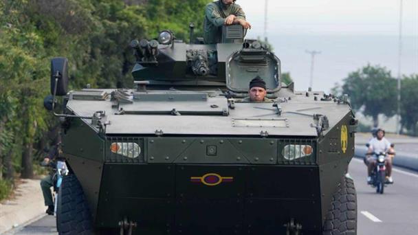 Los militares, que tradicionalmente han sido árbitros de las disputas políticas en Venezuela y son uno de los principales apoyos del mandatario depuesto, expresan pública y repetidamente lealtad a Maduro. A semejanza de su predecesor y mentor, el difunto presidente Hugo Chávez, en el gobierno de Maduro los militares controlan sectores importantes de la economía y forman parte de su equipo ministerial.