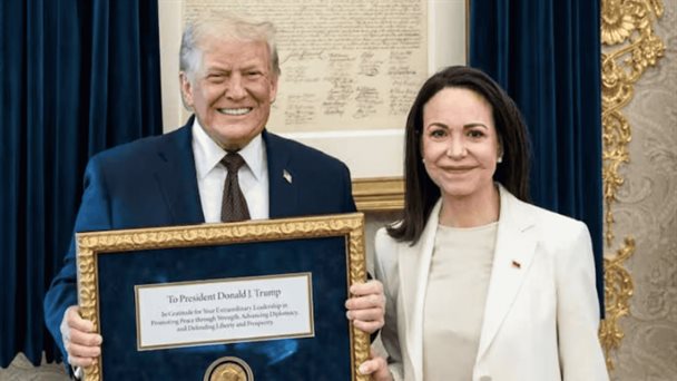 "Fue un gran honor para mí conocer a María Corina Machado, de Venezuela", escribió este jueves Trump en una publicación de Truth Social. "María me presentó su Premio Nobel de la Paz por el trabajo que he realizado. Un gesto maravilloso de respeto mutuo".