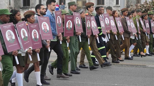 Díaz-Canel lidera protesta en La Habana por militares fallecidos