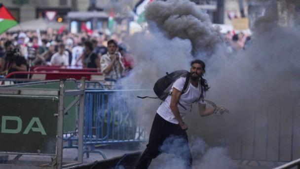 Anteriormente, los manifestantes arrojaron objetos a la policía y los agentes usaron gas lacrimógeno para tratar de dispersar a las multitudes. Los medios de comunicación españoles informaron que las autoridades dijeron que 20 personas resultaron heridas y al menos dos personas fueron detenidas.