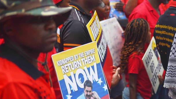 Las protestas siguen a la condena del gobierno sudafricano por la captura de Maduro y las llamadas a las Naciones Unidas para intervenir.