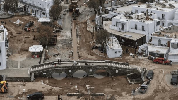 El lunes, las tormentas en Paros arrastraron vehículos hasta el mar e inundaron viviendas y negocios. Las autoridades han solicitado asistencia gubernamental de emergencia para abordar los daños en caminos e infraestructura. En Mykonos también se registró caída de granizo y fuertes vientos.