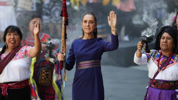 Claudia Sheinbaum recibe bastón de mando de mujeres indígenas en ceremonia especial